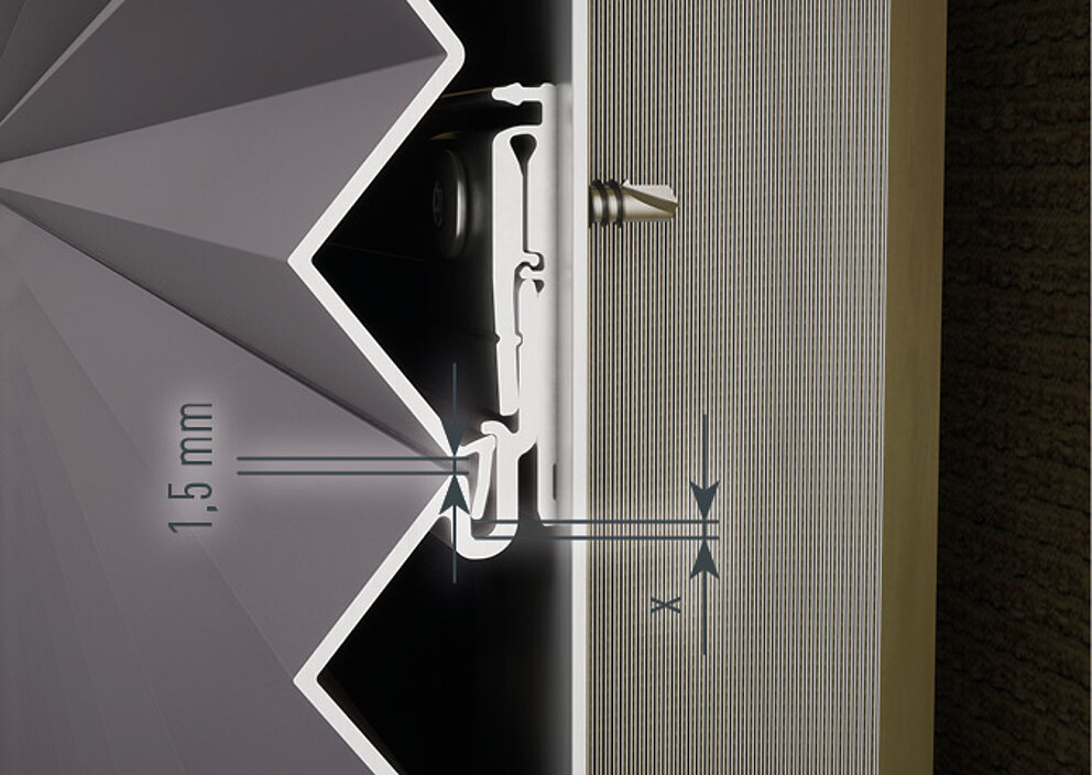 The installation system allows a compensation of +1.5 / -0 mm per cladding width. If compensation is required, it is recommended to distribute it across several profiles to ensure the straightness of the row and to avoid creating prominent joints. In this way, the compensation remains concealed and is almost imperceptible visually, resulting in a uniform and unobtrusive appearance.