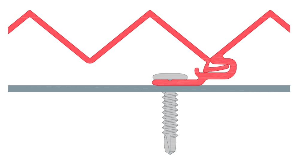 Depending on the installation method, with or without a sliding clip, the fixed point that secures the position of the profile is executed differently. If installation is carried out without sliding clips, the self-drilling screw can be screwed in directly without pre-drilling the profile and sub-structure framework.