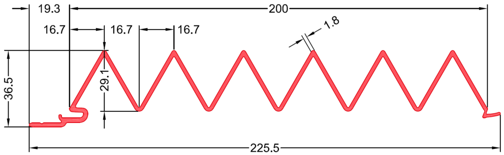 • Material thickness: 1.8 mm