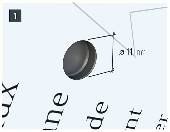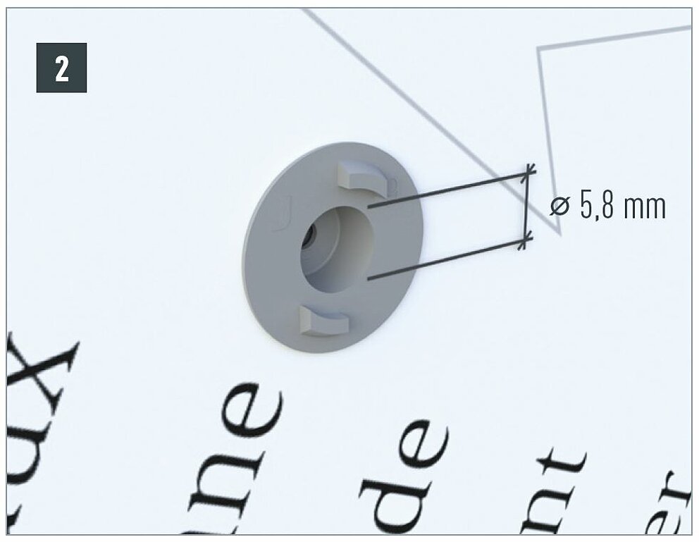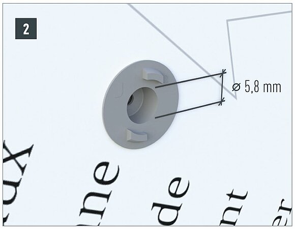 Since the PREFABOND aluminum composite panel is firmly connected to the wooden substructure at this point, a fixed point prevents the panel from moving. To obtain a fixed point, press the fixed point bushing ⌀ 8.5 mm to ⌀ 5.1 mm into the bore hole. In the next step, the screw can be screwed in.