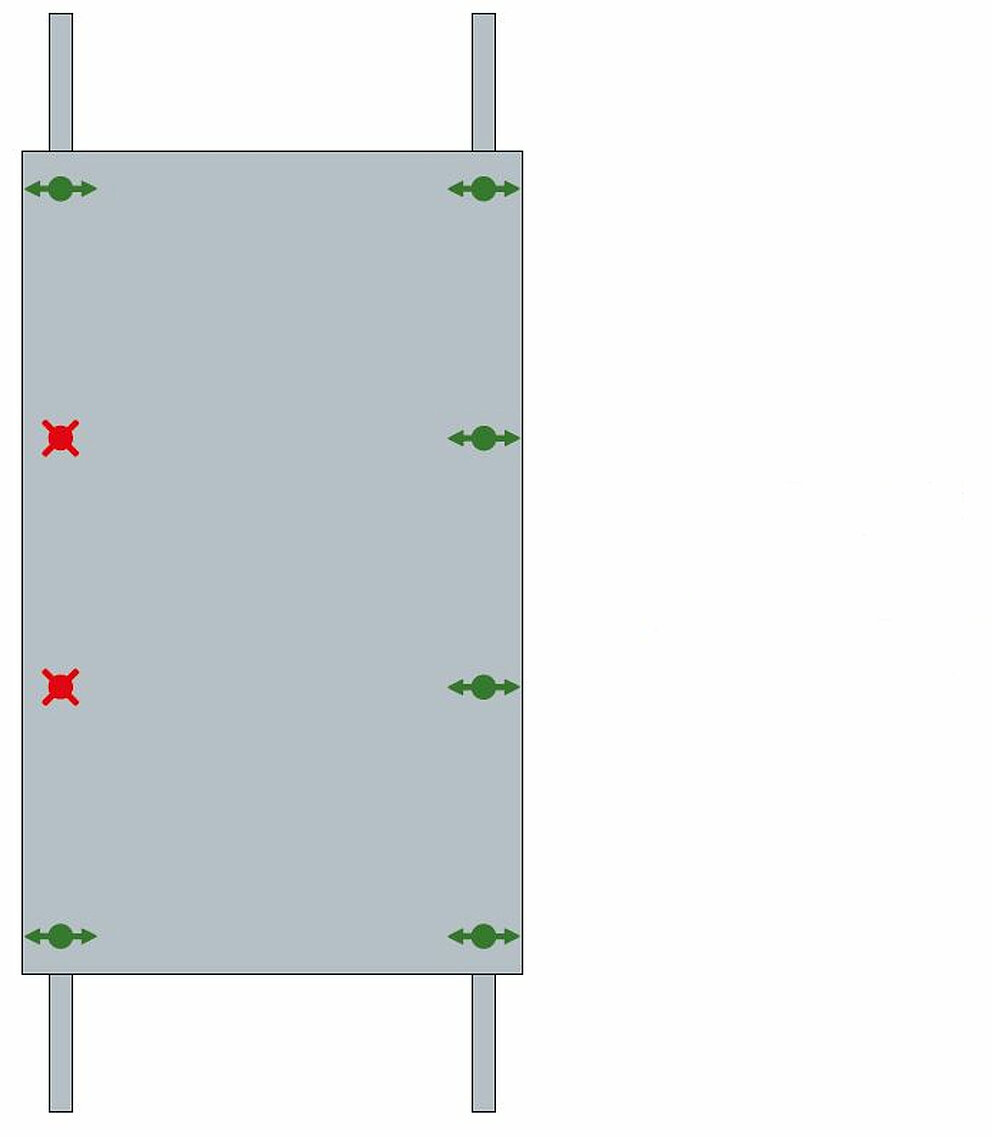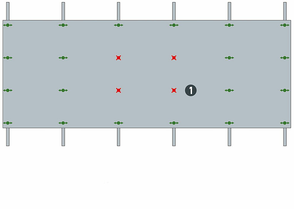 Regardless of the panel size, at least 2 fixed points are required for the mechanical fastening of each panel. This is the only way to ensure that the panel is positioned stably and cannot twist.