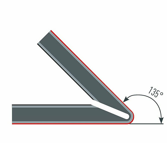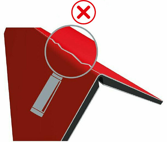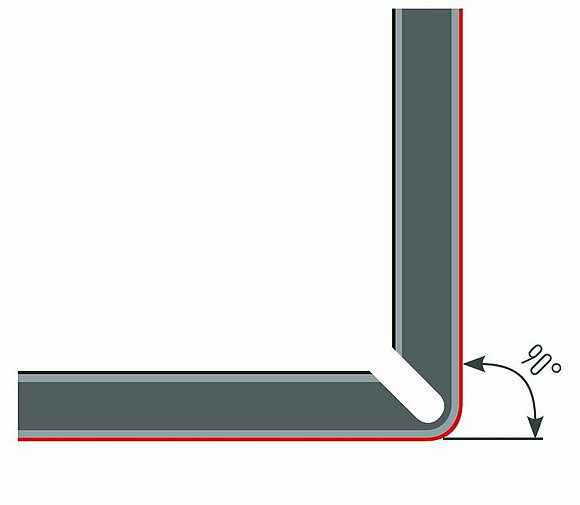 If the V-groove is too deep partially or over the entire length, it will not be possible to create an attractive fold with a constant radius. This could also cause the aluminium cover plate to crack on the visible side. However, if the V-groove is not sufficiently deep, folding will be very difficult. The V-groove folding axis should always be in the centre of the milled root face.