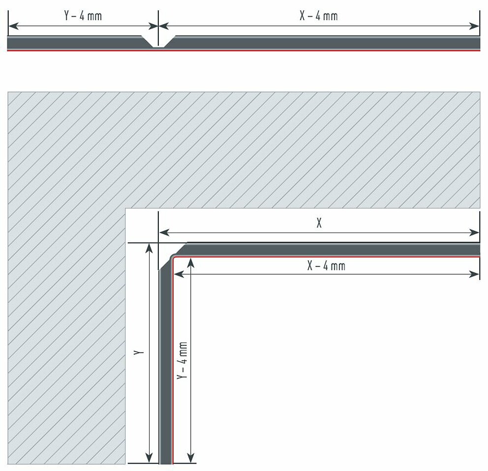 For an external corner, the material thickness of the composite panel (4 mm) is added to the actual measured dimensions.