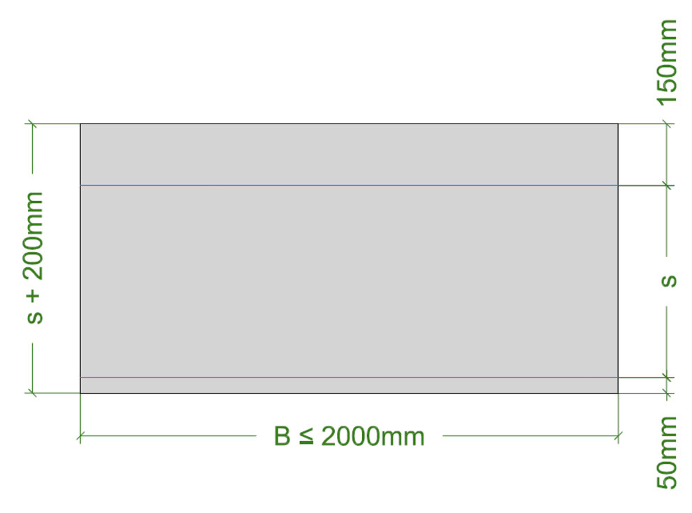 The roll bending process creates a small pressure mark on the panels which is trimmed by PREFA. Note the dimensions of the raw panel. At both ends, it is 200 mm larger in total than the radian measure actually required. 150 mm are added to the radian measure (s) at one end and 50 mm at the other end.