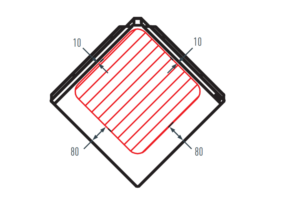 If you install something on the façade (such as lamps), pay attention to the permissible installation area of the 44 × 44 rhomboid façade tiles during installation. If it is not possible to adhere to the installation area, a production board must be folded in.
