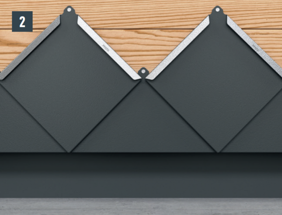 Each 20 × 20 rhomboid façade tile is fastened directly through the pre-punched fastening hole with a supplied ring nail 2.8/25.