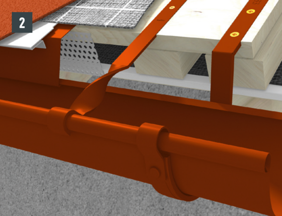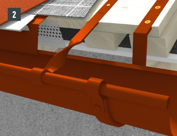 Overbars can be mounted between the gutter brackets for additional bracing of the gutters. PREFA overbars can be used universally for all gutter dimensions.