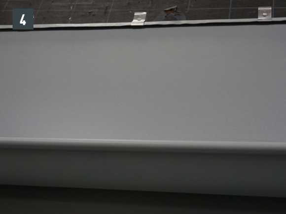 The PREFA on-roof gutter is generally designed for a minimum slope of 3 mm/m. In certain circumstances however, the PREFA on-roof gutter can also be designed without a slope.
