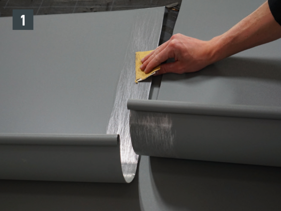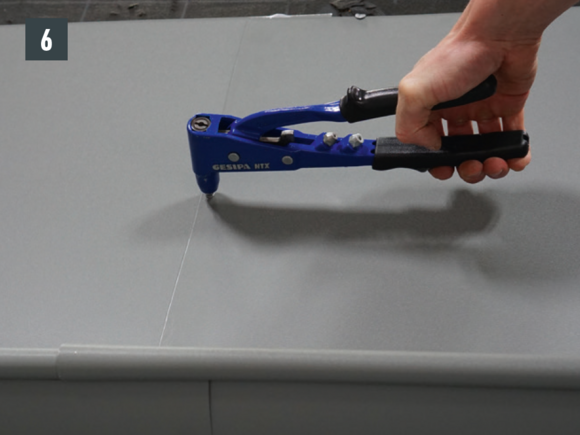 The joint can be made as a glued or riveted version. Riveted joints must also be sealed with PREFA special silicone.