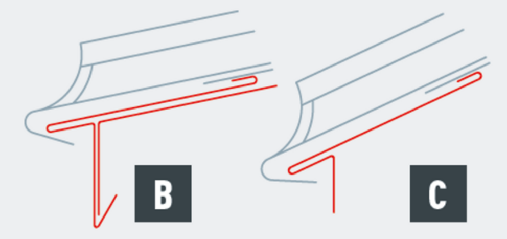 Eaves starter flashing min. 1.0 mm thick (e.g. Fig. A). starter flashing (eaves strip) min. 0.7 mm thick with a continious retaining strip min. 0.8 mm (e.g. Fig. B).