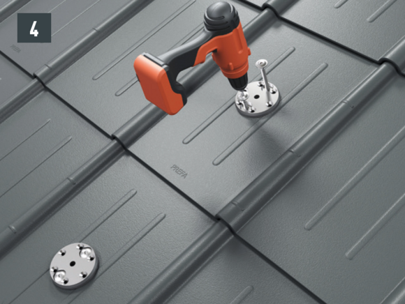 Do not place and fasten foot section on the fold or crest of the PREFA roof covering. Observe mounting areas on the respective roof products. It may be necessary to fit a base plate (e.g. if there is a rebate or crest in the area of the rafters).