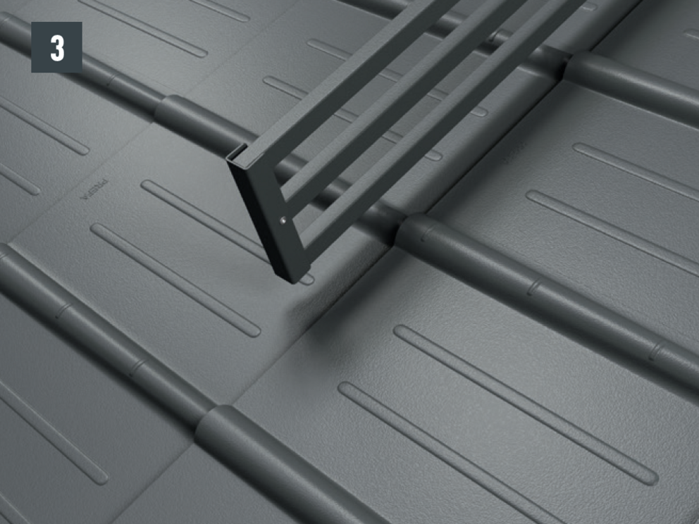 The pipe-style snow guard system can only be installed on a solid, flat and fully supported substrate. |