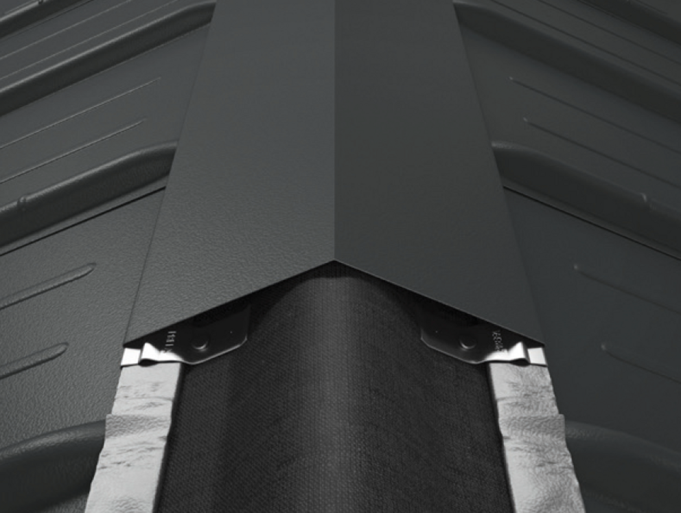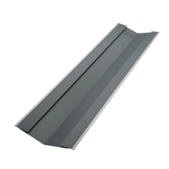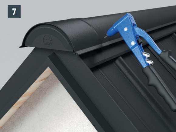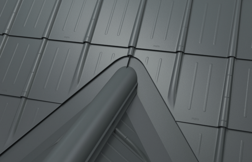 A simple ridge cap can be used if the distance between the PREFA roof covering and the ridge point is less than 150 mm, and no ventilation is required.