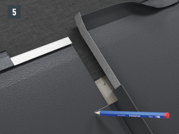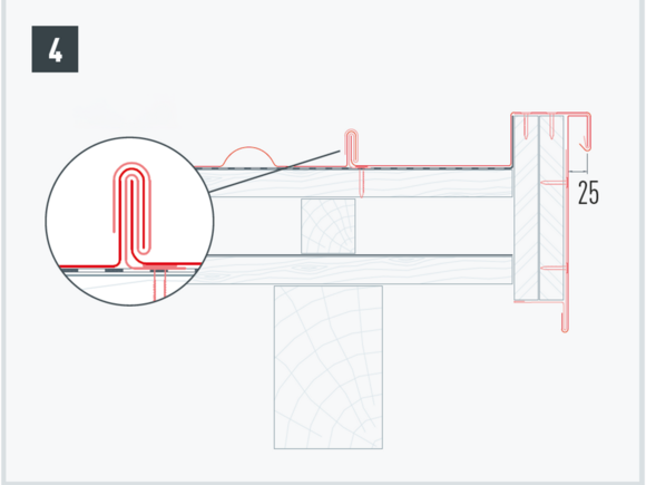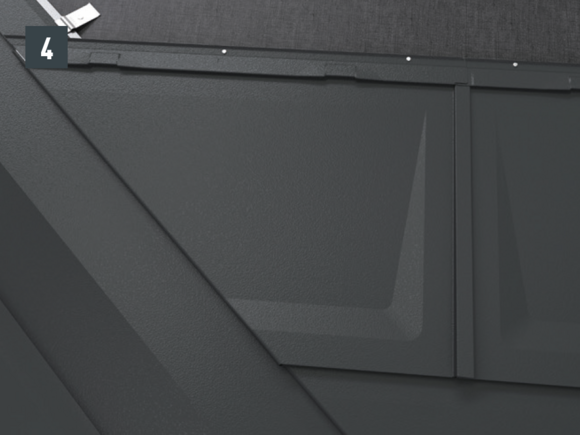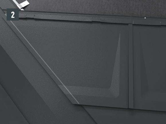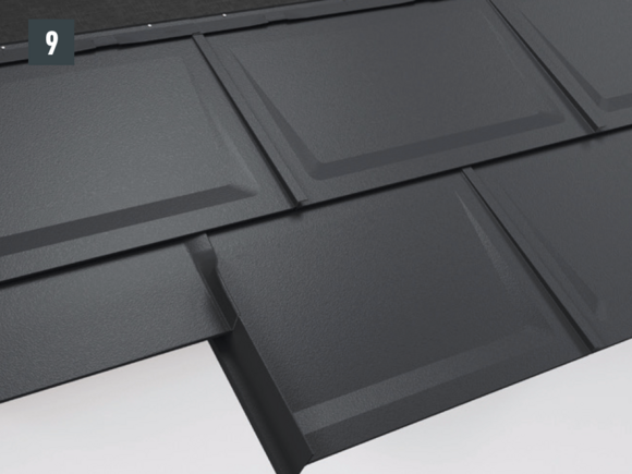 With each left-hand upstand of the shingle (verge flashing and edging), the folds running diagonally downwards are to be notched in order to avoid any capillary action.