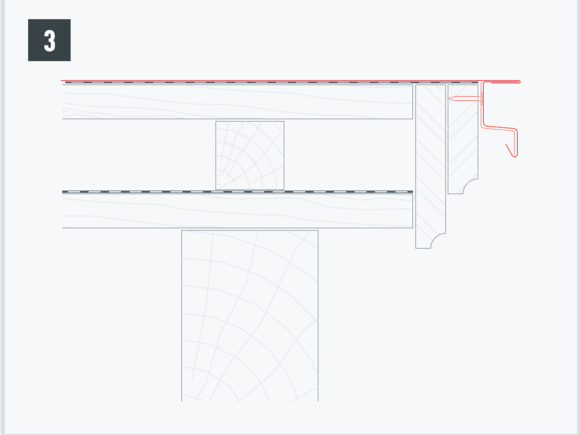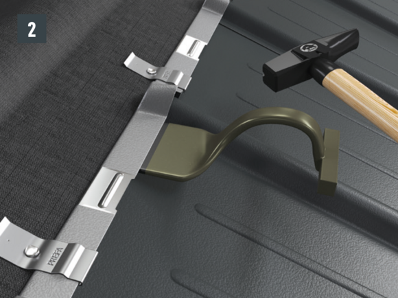 The starter strip is to be nailed storm-proof (nail out all pre-punched holes). Pin the starter strip through before nailing out any pre-punched holes with the supplied PREFA nails.