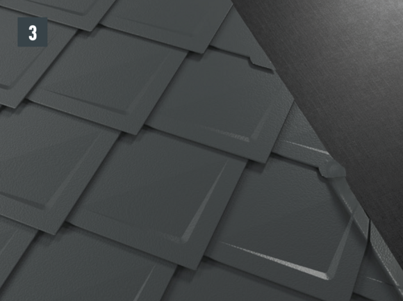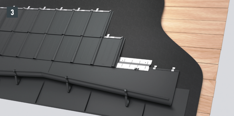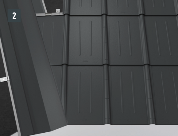 The following row of rhomboid roof tiles can then be installed over the entire width (Fig. 2A and 2B).