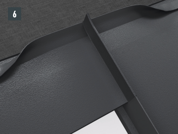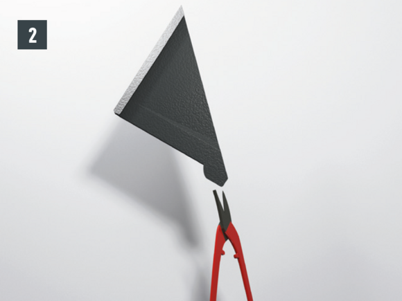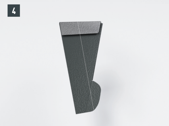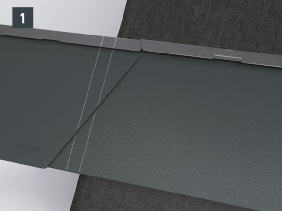 With each left-hand upstand of the DS.19 shingle (verge flashing and edging), the folds running diagonally downwards are to be notched in order to avoid any capillary action.