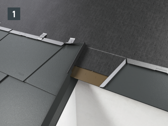 After preparing the shingle, the connection flashing (e.g. gable cladding or wall connection cove) can be produced and worked into the covering.