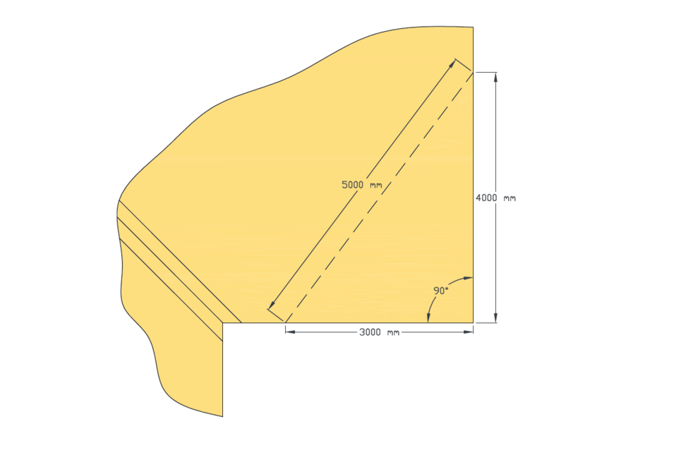 First, mark the desired corner point. Then scribe a length of 3 m along the edge where the right angle is to be created. Now measure a length of 4 m from the same corner point, roughly in the desired direction of the right angle.