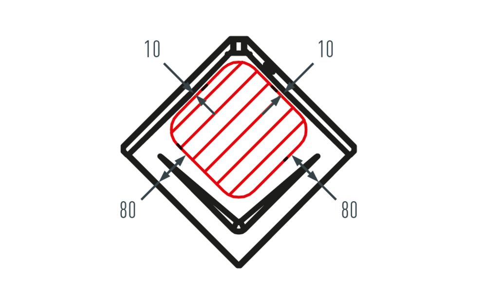 When installing roof accessory products, pay attention to the permissible installation area on the rhomboid roof tiles 29 × 29. The figure below shows the installation area for accessory products on bases. Different installation areas may be defined for other accessory products.