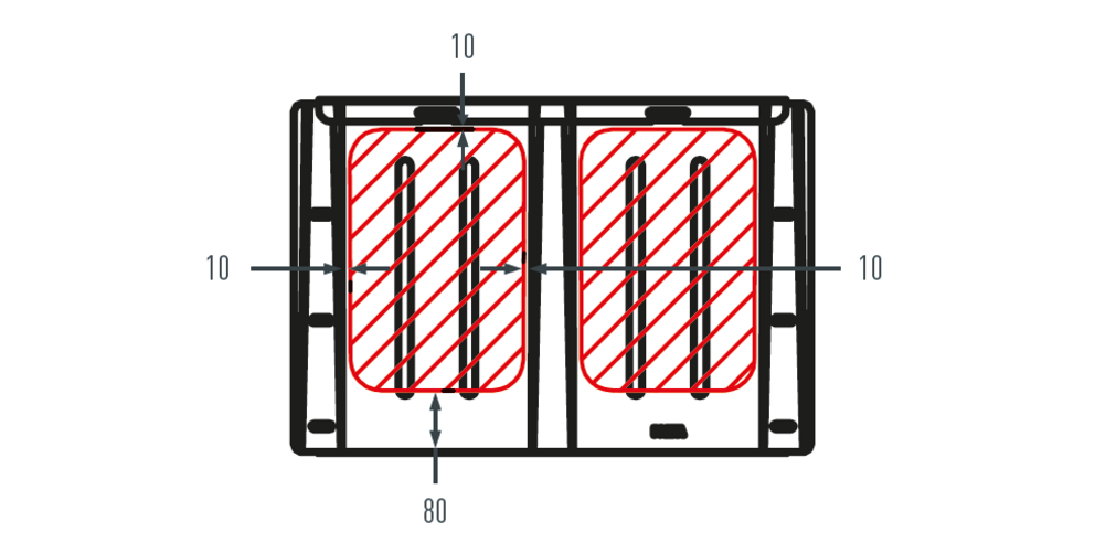 When installing roof accessory products, pay attention to the permissible installation area on the roof tiles. The figure below shows the installation area for accessory products on bases. Different installation areas may be defined for other accessory products.